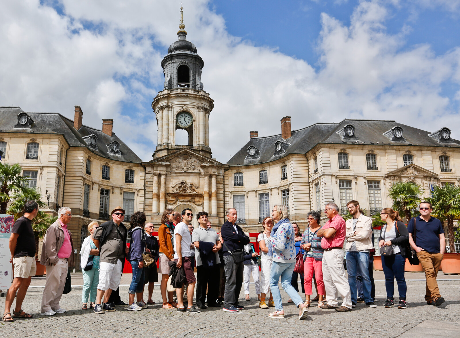 Après l’incendie de 1720, Jacques Gabriel, architecte du roi, imagine de regrouper en une seule et même construction, sur une place neuve, l’Hôtel de Ville, le présidial et la tour de l’horloge. Sa partie centrale incurvée se réfère aux édifices construits par les grands architectes Le Vau et Hardouin-Mansart. La visite des groupes scolaires se poursuit à l’intérieur par le panthéon en hommage aux soldats, et la salle des mariages.
