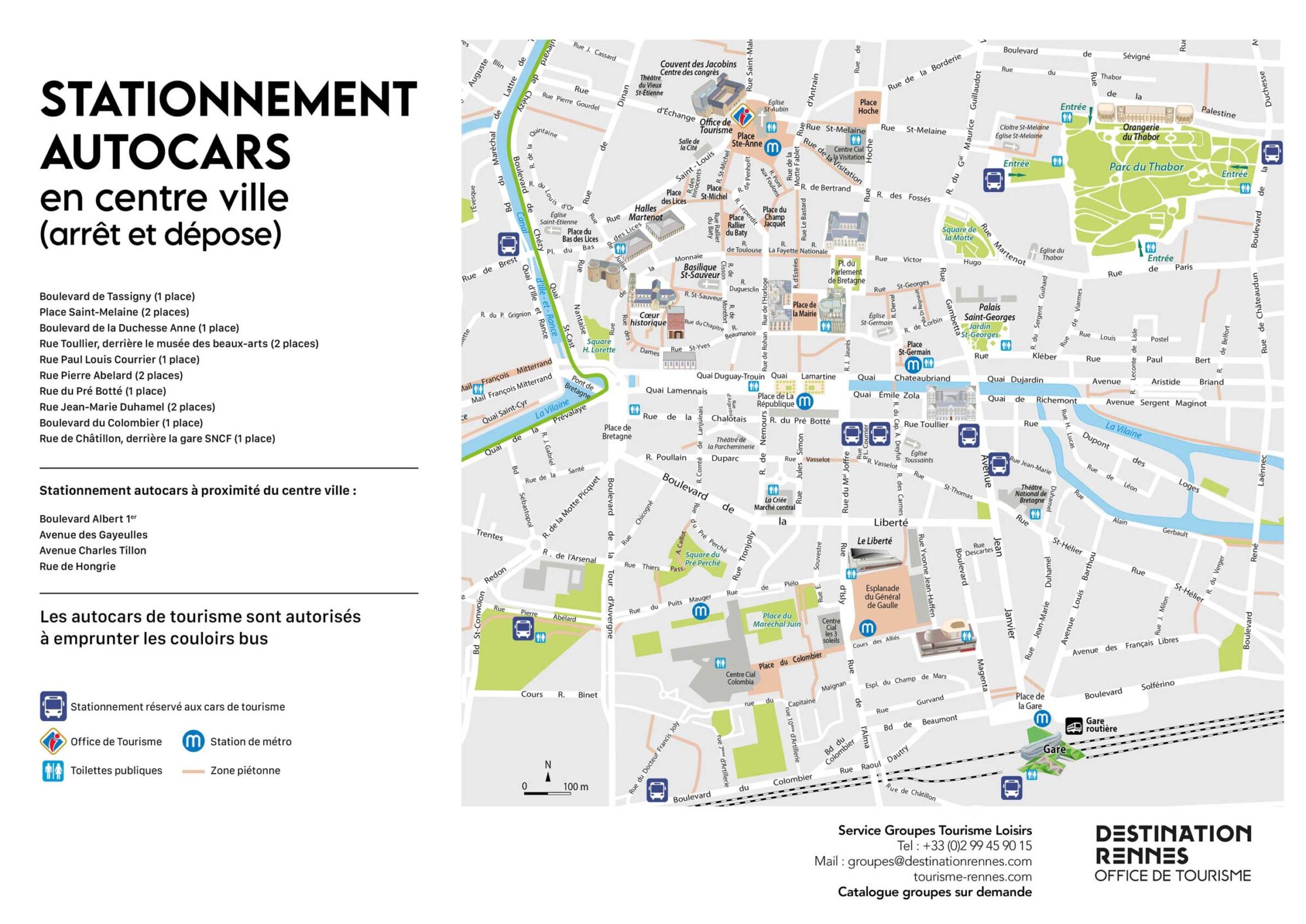 Toutes les informations pratiques pour venir à Rennes, les emplacements réservés aux cars de tourisme, vos contacts pour organiser votre excursion en groupe, notre brochure spéciale… A Rennes on est accueillants !
